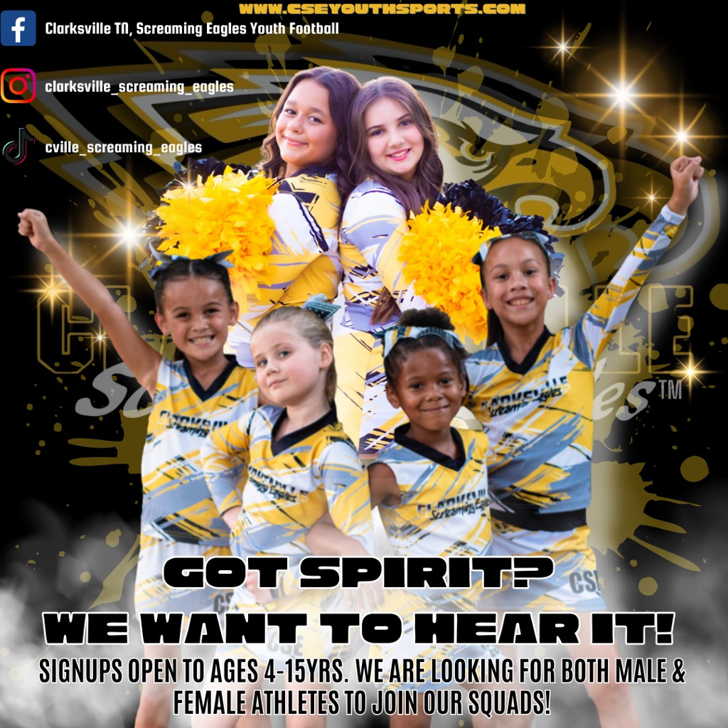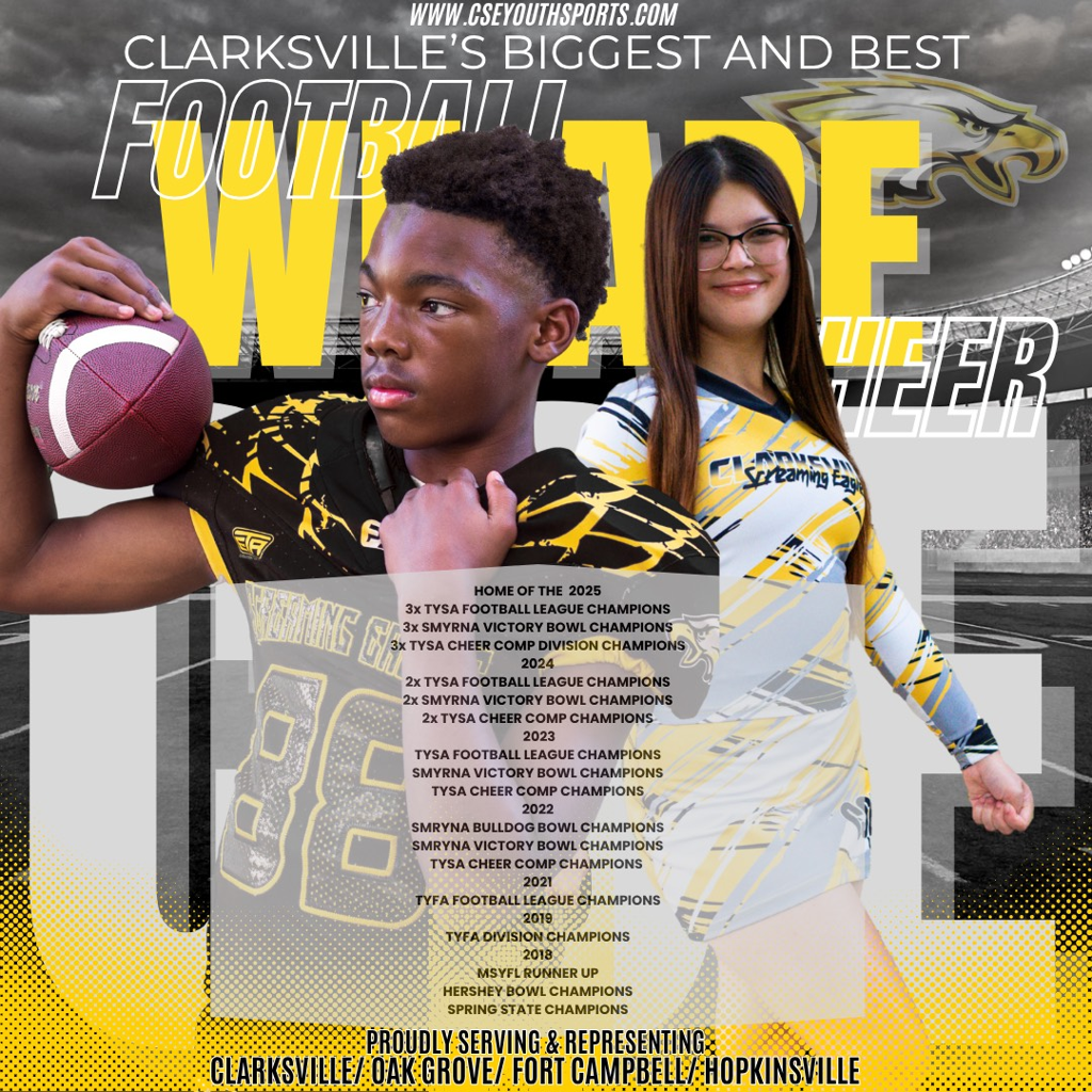 The Clarksville Screaming Eagles Organization supports student-athletes within our community, including Fort Campbell, Oak Grove, and surrounding counties. Our mission is to provide year-round assistance to student-athletes. We are committed to providing financial services, equipment provisions, ample training opportunities, and healthy programs to empower student-athletes to achieve their full potential. We aim to harness the power of sports as a catalyst for developing young leaders. Our Organization is committed to utilizing our resources to make a lasting impact in the lives of young people of all ages, fostering personal growth while promoting health, fitness, and overall physical activity to shape a brighter future.